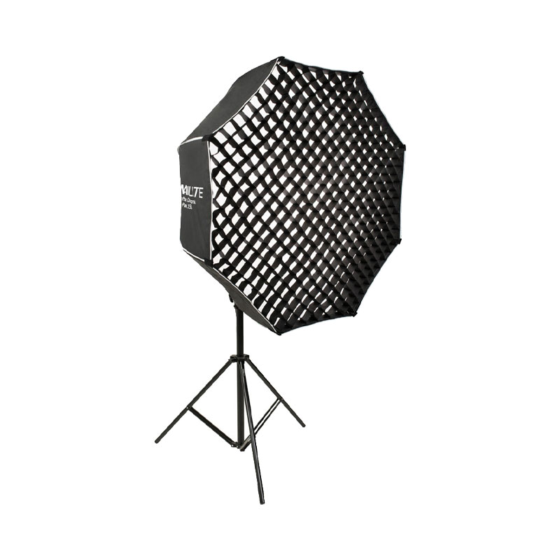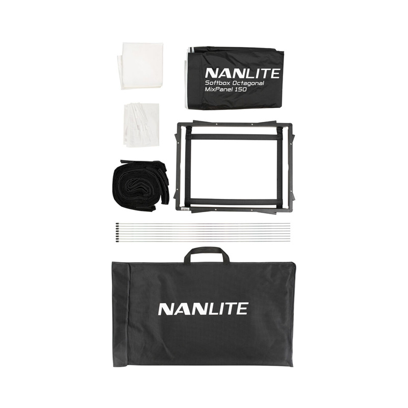 سافت باکس Octagonal نرمی نور ال ای دی Nanlite MixPanel 150 را به شدت افزایش می دهد و کنتراست را نیز کاهش می دهد. شکل هشت ضلعی برای عکاسی پرتره، کلوزآپ، عکاسی مد و سرهای سخنگو، زمانی که می خواهید نورگیرهای دایره ای با ظاهری طبیعی را در چشمان سوژه خود ثبت کنید، ایده آل است. سافت باکس هشت ضلعی دارای یک لایه داخلی و خارجی انتشار است تا نرم ترین نور ممکن را ارائه دهد. یک توری پارچه ای سفارشی نیز برای کنترل جهت بیشتر سافت باکس و به حداقل رساندن ریختن ناخواسته گنجانده شده است. فضای داخلی سافت باکس دارای پوشش نقره ای بازتابنده است که نور خروجی MixPanel 150 را تشدید می کند.