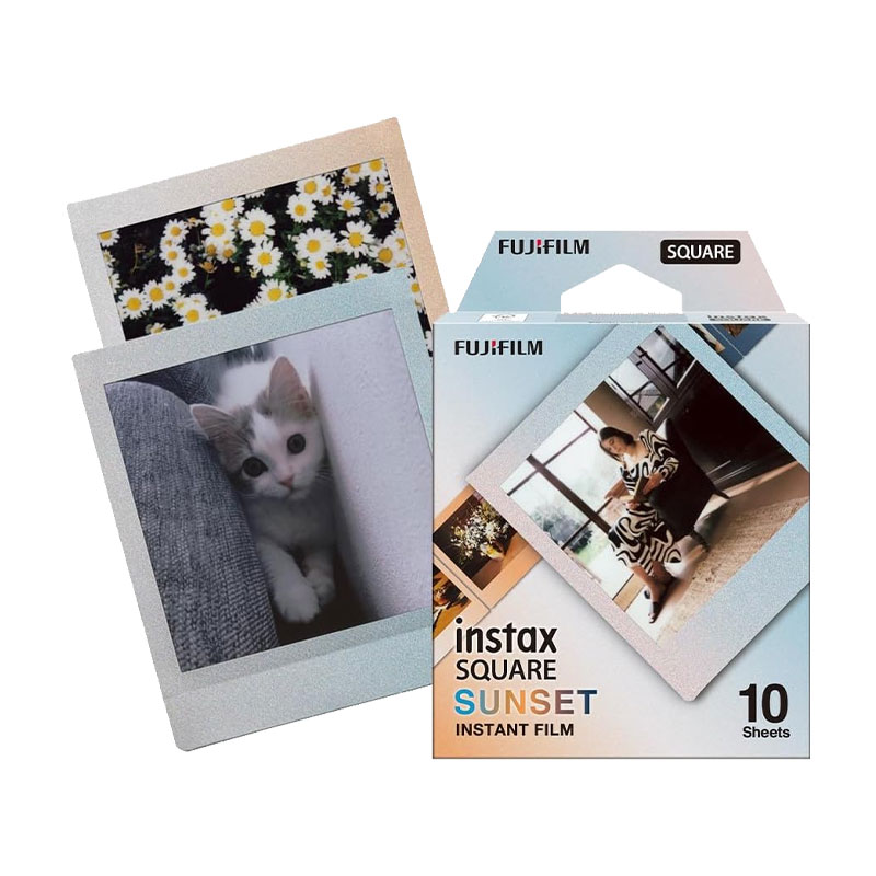 بسته فیلم چاپ فوری INSTAX SQUARE Sunset دارای طراحی گرادیان با تُن گرم است که یادآور رنگ‌های غروب خورشید در یک عکس INSTAX SQUARE با ابعاد 3.39 اینچ در 2.83 اینچ است. فیلم فوری INSTAX SQUARE Sunset در یک بسته 10 نوردهی موجود است. می‌توان از آن با همه دوربین‌های چاپ فوری INSTAX SQUARE و همه چاپگرهای تلفن هوشمند INSTAX SQUARE LINK™ استفاده کرد.
