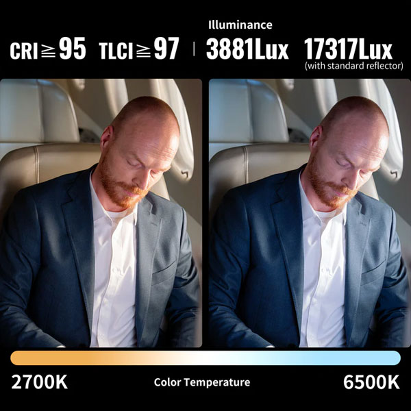 طیف رنگی گسترده قابل تنظیم: نور ال ای دی ژیون ZHIYUN MOLUS X100 دارای طیف رنگی بسیار گسترده از 2700 تا 6500 کلوین است که به کاربر امکان تنظیم دقیق دمای رنگ را میدهد. این ویژگی بسیار مهم است. زیرا با دمای رنگ مختلف میتوان احساسات و فضاهای متفاوتی را در تصویر ایجاد کرد. نور گرم اغلب برای ایجاد حس آرامش و صمیمیت استفاده میشود، در حالی که نور سرد برای صحنههای رسمیتر و خنثیتر مناسب است. این انعطافپذیری در دمای رنگ به فیلمبرداران و عکاسان امکان میدهد تا دقیقاً نور موردنظر خود را برای دستیابی به جلوههای بصری خاص ایجاد کنند.